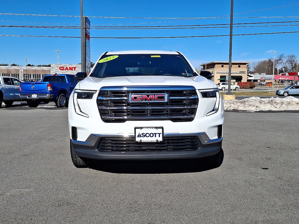 2025 GMC Acadia Certified. GM CERTIFIED, LOCAL TRADE, Acadia Elevation, 4D Sport Utility, 2.5L DOHC, 8-Speed Automatic, AWD, Summit White, After Dark w/Cloth Seat Trim, Preferred Equipment Group 4SD. Odometer is 2970 miles below market average!