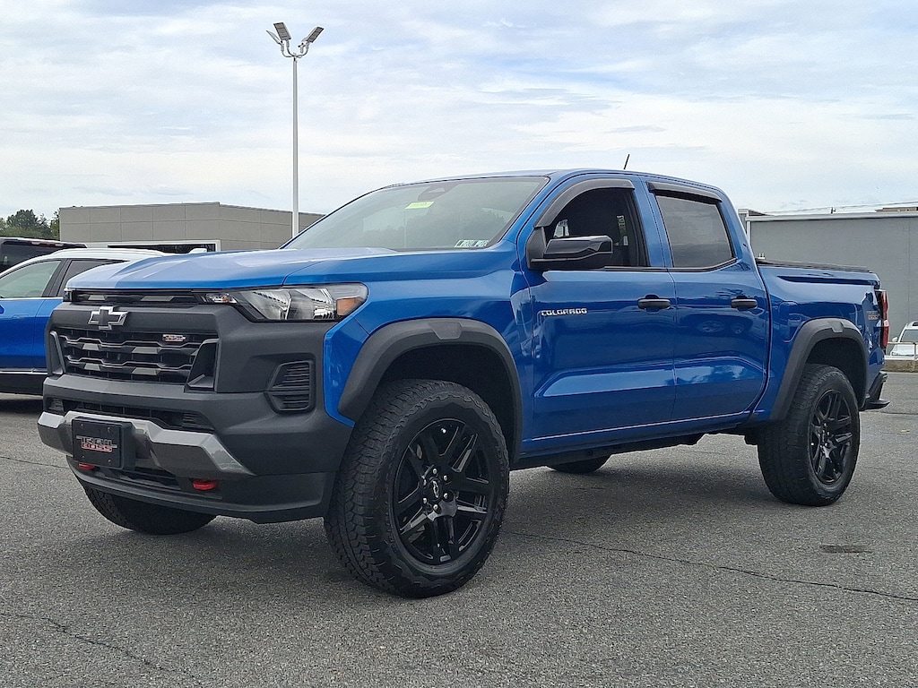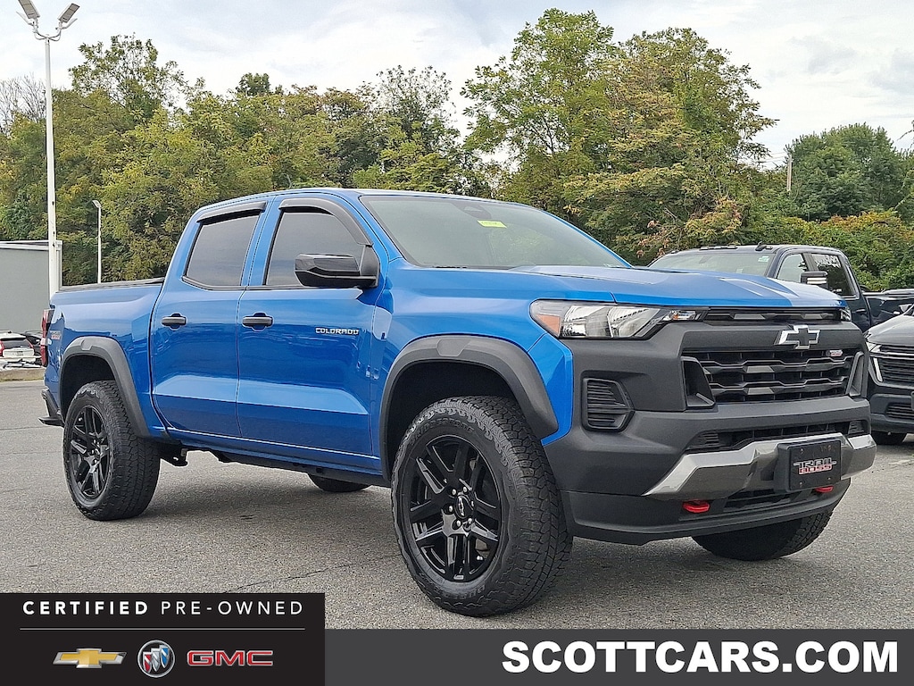 2023 Chevrolet Colorado Certified. GM CERTIFIED, LOCAL TRADE, Colorado Trail Boss, 4D Crew Cab, 2.7L Turbo, 8-Speed Automatic, 4WD, Glacier Blue Metallic, Jet Black w/Cloth Seat Trim, 8-Way Power Driver Seat Adjuster, Apple CarPlay/Android Auto, Automatic Emergency Braking, Black Painted Mirror Caps, Black Spray-On Bedliner w/Chevrolet Logo, Blind Zone Steering Assist, Chevy Safety Assist, Electronic Automatic Cruise Control, EZ-Lift & Lower Tailgate, Following Distance Indicator, Forward Collision Alert, Front Pedestrian & Bicyclist Braking, Heated Power-Adjustable Outside Mirrors, IntelliBeam Automatic High Beam On/Off, Lane Keep Assist w/Lane Departure Warning, Manual Rear-Sliding Window, Power Driver Lumbar Control Seat Adjuster, Preferred Equipment Group 0TR, Rear Cross Traffic Braking, Rear Park Assist, Rear-Window Electric Defogger, Safety Package, StowFlex Tailgate Storage Compartment, Tailgate Keyed Cylinder Lock, Trail Boss Convenience Package, Trail Boss Convenience Package II, Wheels: 20" x 9" High Gloss Black Aluminum.