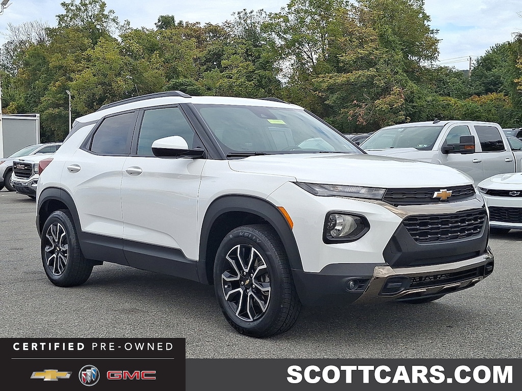 2023 Chevrolet TrailBlazer Certified. GM CERTIFIED, LOCAL TRADE, TrailBlazer ACTIV, 4D Sport Utility, 1.3L Ecotec Turbo DOHC SIDI w/VVT, 9-Speed Automatic, AWD, Summit White, Jet Black w/Arizona Accents w/Leatherette Seat Trim, 1 Type-A & 1 Type-C USB Charging-Only Ports, 120-Volt Power Outlet, 8" Diagonal Color Touchscreen Display, Cabin Humidity Sensor, Convenience Package, Driver & Front Passenger Illuminated Vanity Mirrors, Driver Confidence Package, Dual-Pane Panoramic Power Sunroof, Hands-Free Power Programmable Liftgate, Heated Steering Wheel, Inside Rear-View Auto-Dimming Mirror, Lane Change Alert w/Side Blind Zone Alert, Preferred Equipment Group 1SA, Rear Cross Traffic Alert, Rear Park Assist, Single-Zone Auto Climate Control Air Conditioning, Sun & Liftgate Package. 26/30 City/Highway MPG