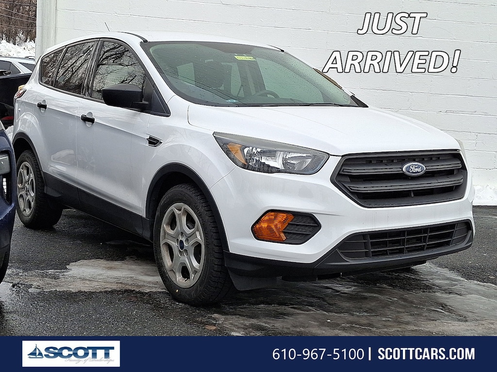2018 Ford Escape LOCAL TRADE, Escape S, 4D Sport Utility, 2.5L i-VCT, 6-Speed Automatic, FWD, Oxford White, Charcoal Black w/Cloth Front Bucket Seats, Equipment Group 100A. Odometer is 48308 miles below market average! 21/29 City/Highway MPG