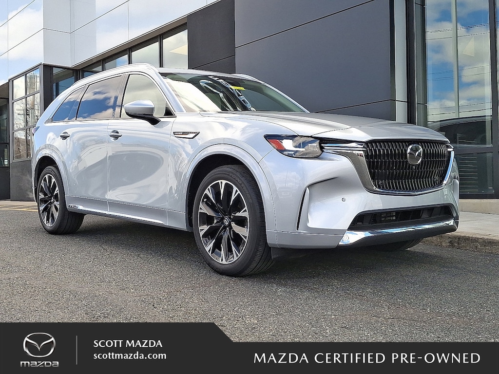 2025 Mazda CX-90 Certified. MAZDA CERTIFED, LOCAL TRADE, CX-90 3.3 Turbo S Premium Plus, 4D Sport Utility, I6 Turbo, 8-Speed Automatic, AWD, Sonic Silver, White w/Nappa Leather Seat Trim. 23/28 City/Highway MPG